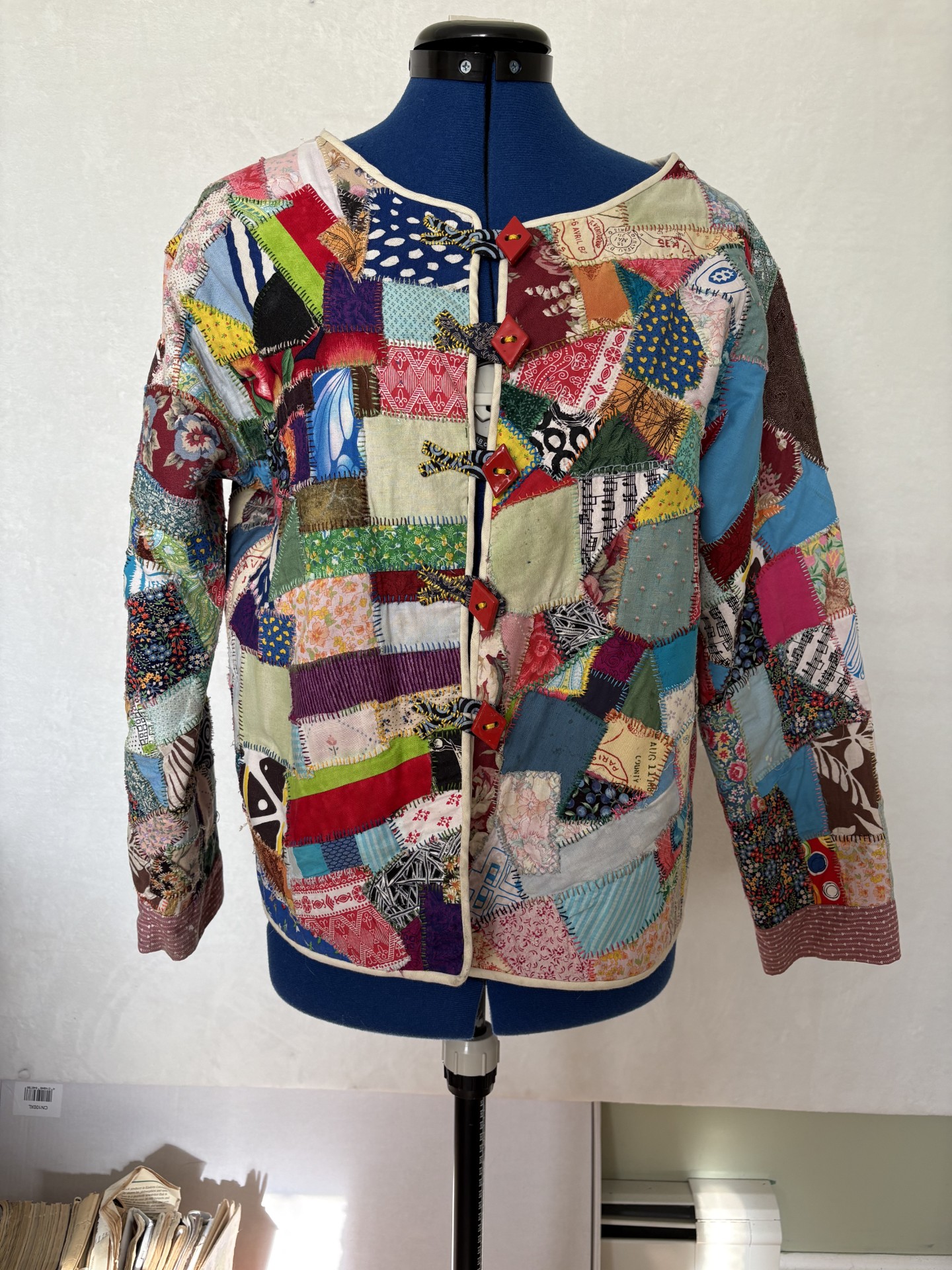 Conni Whittaker Make a scrappy crazy quilt jacket. Hand or machine sew or a mixture of both. You probably won't have a complete jacket at the end but we will cover finishing in class. Skill Level: Machine sewers should have used their sewing machine before and know how to thread and wind the bobbin. Hand sewers should know how to thread and use a needle. Enrollment: 8 Workshop Fee: $85 Bring to Class: An oversized prewashed 100% cotton or close to it sweatshirt a few sizes larger than you usually wear so that it is large enough to fit over the type of clothing you will be wearing under it. Sewing machine in good working order and a short extension cord, machine sewing threads and bobbins unless you prefer to hand sew your jacket. Sewing scissors, safety or stick pins. This is a good opportunity to use up those odd color thread spools or bobbins. Don't forget your reading glasses if you need them to thread needles. Optional: Sewing machine in good working order, machine sewing threads and bobbins. This is a good opportunity to use up those odd color thread spools or bobbins. Sewing threads, embroidery floss, pearl or crochet cotton or anything else you feel inspired to use. Your reading glasses if you need them to thread needles. Nice to havebut Optional: Sewing scissors or thread snips, mini rotary cutter and matt, hand sewing and/or embroidery needles, thimble, stick or safety pins, pin cushion, needle threader if you need one, and/or glue stick. Your reading glasses. Bring any sewing scraps you would like to use. I will Bring: A handout with instructions, an assortment of needles, a few thimbles, needle pullers, tape measure, iron and mat to tame unruly scraps, large rotary matt, cutter and rotary ruler for removing cuffs and ribbing, sewing scissors and small thread cutting scissors, example jackets for you to compare methods, linings, cuffs, closures etc., my large bin of scraps and embroidery threads to share. Time: Friday - All Day Class ~~~~~~~~~~~~~~~~~~~~~~~~~~~~~~~~~~~~~~~~~~~~~~~~~~~~~~~~~~~~~ |