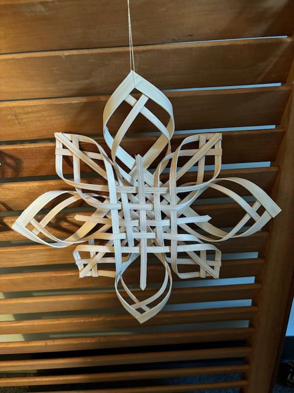 Ida Atkinson Carolina Star Back by popular demand! Whether you see this as a holiday ornament or a year round part of your decor, this is a fun and decorative product to take home. This will be a 1/4" flat reed star. We will weave two halves and set aside to dry. Students will put together halves at home. If you are speedy there is opportunity to make two more halves with 1/2" flat reed. A demo will be given of how to glue the two halves together. Don't worry. It is fairly simple to create a lovely finished product Make sure to bring 24 spring clothespins per star. Skill level: all Enrollment: Min 3 Max 10 Workshop fee: $40.00 Tools to bring to class: Pencil, ruler/measuring tape, scissors, small bucket for water. CLOTHESPINS are a must. Material fee: $6.00-$8.00 (to be paid to instructor) Time: Friday am - half day class ~~~~~~~~~~~~~~~~~~~~~~~~~~~~~~~~~~~~~~~~~~~~~~~~~~~~~~~~~~~~~ |