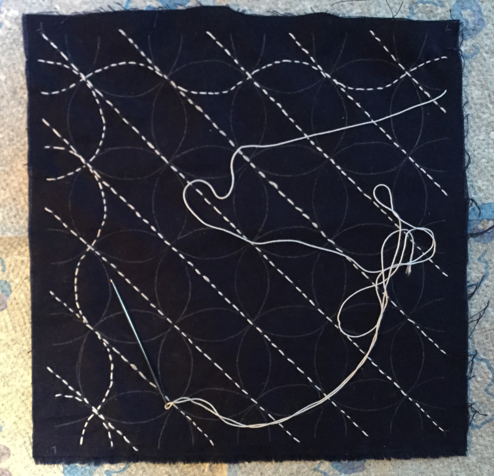 Design Your Own Sashiko Project Instructor: Linda Whiting If you can do a running stitch you can do Sashiko (sash-ko) to create beautiful household items and clothing. If you have taken a beginning class, this is an opportunity to expand your skills to design your own project. Students will work on their chosen piece using vellum tracing paper and an assortment of Sashiko patterns to compose the designs for stitching. Once the final tracing is complete students will transfer the designs using white carbon paper and begin stitching. ***If you have never done Sashiko before it would be best to start with a simple project like a table runner or placemats. ***Those with some Sashiko experience and sewing ability might choose to do a simple vest or jacket. Skill level: open to all Enrollment: 10 Workshop fee: $85.00 Materials fee: $15.00 (to be paid to instructor) iMaterials provided: Sashiko thread, needles, tracing vellum, tape, carbon paper, patterns to trace Materials students should bring to class: light weight navy blue cotton cloth cut to project of choice, scissors, pencil and ballpoint pen. After registration, instructor will be in contact with each student to discuss project, sizing for mats and runners, etc., and answer any questions about projects Time: Friday - All Day Class ~~~~~~~~~~~~~~~~~~~~~~~~~~~~~~~~~~~~~~~~~~~~~~~~~~~~~~~~~~~~~