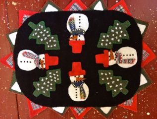 These are simple appliqued shapes of felted wool fabrics layered to create simple folk art patterns and designs. Each shape is embroidered in place using a blanket stitch around its borders. Penny Rugs are so named because one of the commonest designs is small circles layered onto one another. Seldom actually used as rugs, these wool appliques can be used as table mats or wall hangings. Small projects could include a scissors case or an eyeglass case, pincushion or little bag.