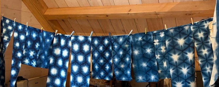 Sekka / Fish Wind Sock - Instructor: Kathleen Goddu Create a traditional Japanese fish wind sock. We will begin by creating the fabric using the Sekka shibori technique. You will be amazed by the simplicity of this technique and the mesmerizing, illuminating patterns it reveals. Use this beautiful fabric to create a traditional Japanese fish wind sock to hang inside or outside of your home/camp. When the windsock is finished it will be on a swivel so that it will spin in the wind!! Skill level: all Enrollment: min. 5 max 10 Workshop fee: $55.00 Material Fee: $15 (to be paid to instructor) Materials provided: Fabric, fish pattern, dye (indigo), a swivel, fishing line, and a 2" ring. At least one sewing machine, surgical gloves, irons, ironing boards, and an extractor. Supplies to Bring to class: Fabric scissors, straight pins, needle and thread (white or black), and an apron. Time: Friday - All day class ~~~~~~~~~~~~~~~~~~~~~~~~~~~~~~~~~~~~~~~~~~~~~~~~~~~~~~~~~~~~ |