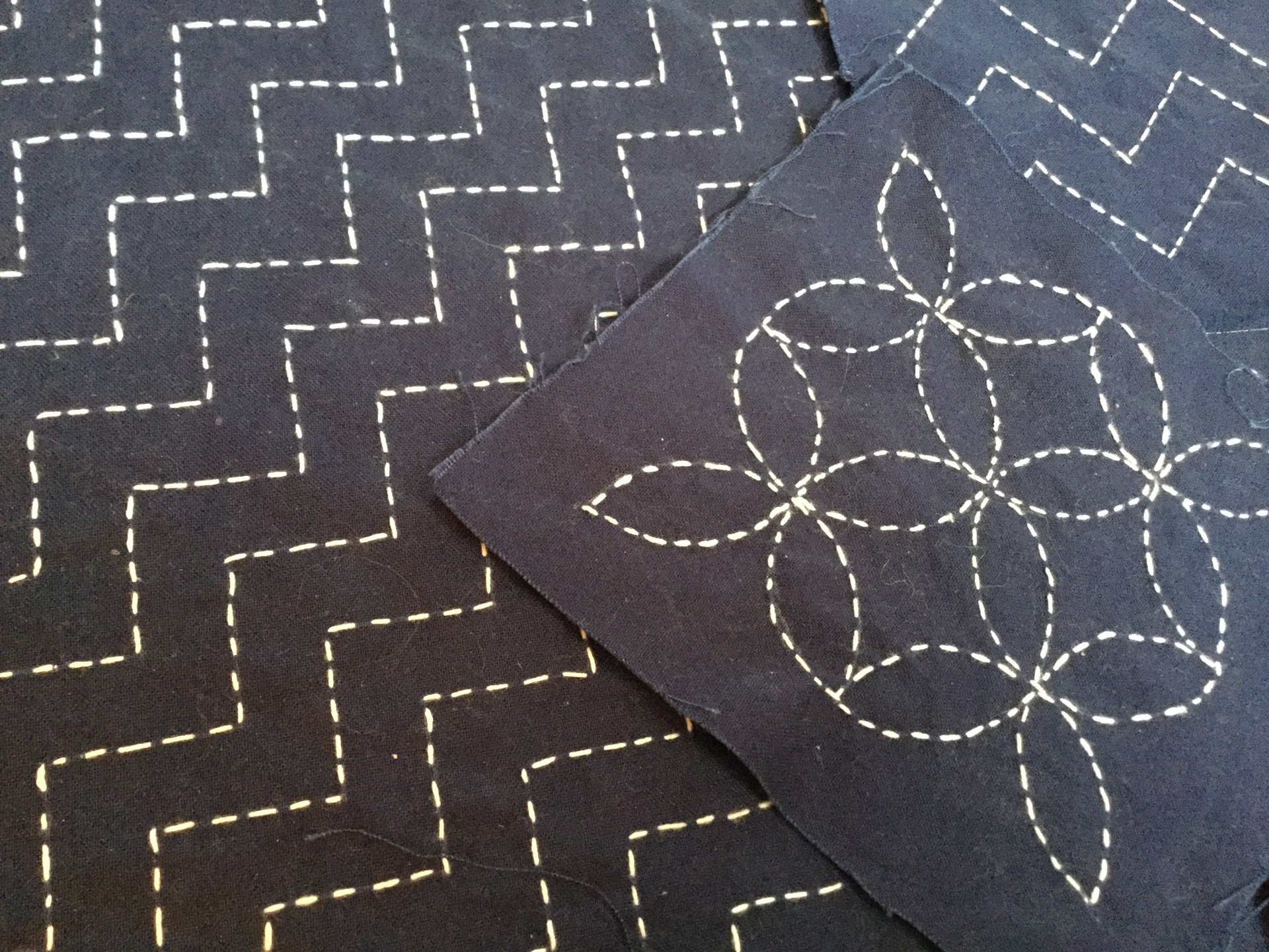Design Your Own Sashiko Project Instructor: Linda Whiting If you can do a running stitch you can do Sashiko (sash-ko) to create beautiful household items and clothing. If you have taken a beginning class, this is an opportunity to expand your skills to design your own project. Students will work on their chosen piece using vellum tracing paper and an assortment of Sashiko patterns to compose the designs for stitching. Once the final tracing is complete students will transfer the designs using white carbon paper and begin stitching. ***If you have never done Sashiko before it would be best to start with a simple project like a table runner or placemats. ***Those with some Sashiko experience and sewing ability might choose to do a simple vest or jacket. Skill level: open to all Enrollment: 10 Workshop fee: $85.00 Materials fee: $15.00 (to be paid to instructor) iMaterials provided: Sashiko thread, needles, tracing vellum, tape, carbon paper, patterns to trace Materials students should bring to class: light weight navy blue cotton cloth cut to project of choice, scissors, pencil and ballpoint pen. After registration, instructor will be in contact with each student to discuss project, sizing for mats and runners, etc., and answer any questions about projects Time: Friday - All Day Class ~~~~~~~~~~~~~~~~~~~~~~~~~~~~~~~~~~~~~~~~~~~~~~~~~~~~~~~~~~~~~