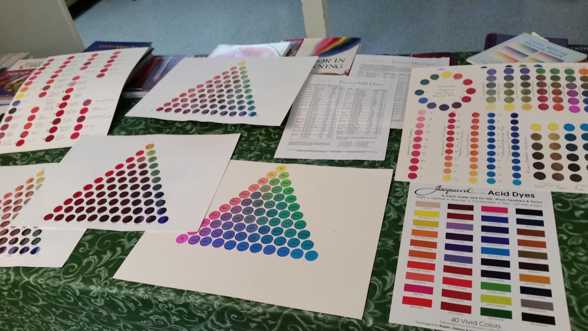 Rainbows - Instructor: Linda Whiting We all know the primary colors of red, yellow and blue. With just these three we can create a full rainbow. But did you know there are different kinds of rainbows? Using fuchsia, bright yellow and turquoise as our three primaries will create a bright, tropical colored rainbow, while a cranberry red, gold, and deep blue will create a rich traditional rainbow of colors. There are many reds and blues and yellows to choose from. What three will give you the colors you want to use in your work? Do you want bright greens or loden greens, sunshine yellows or rich golden yellows, vibrant red violets or rich purples? By changing the root primaries you can create the perfect colors for your painting, dyeing and other colorwork. Suitable for anyone who likes to play with color, no experience necessary. Class Fee: $80 includes instruction and information sheets, watercolor master sheet, dyes and use of brushes and other necessary equipment, yarn samples and mounting cards. Time: Saturday - all day class ~~~~~~~~~~~~~~~~~~~~~~~~~~~~~~~~~~~~~~~~~~~~~~~~~~~~~~~~~~~ |
